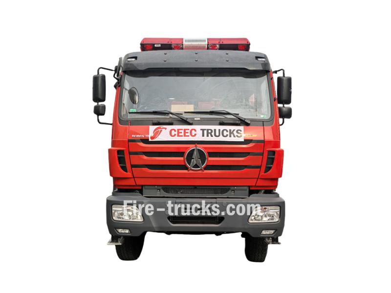 water ≥70m, foam ≥60mDer Beiben 2638 Feuerwehr-Rettungsfahrzeug mit Schaumtank Das Fahrzeug ist ein professionelles Feuerwehrfahrzeug, das auf dem Fahrgestell des Schwerlast-Lkw Beiben 2638 6×4 basiert. Es eignet sich für verschiedene Einsatzszenarien, darunter Stadtbrände, Brände in Industrie- und Bergbaubetrieben sowie Straßenrettungseinsätze. Ausgestattet mit einem Weichai-Motor mit 380 PS und einem 12-Gang-Automatikgetriebe, vereint das Fahrzeug Ausrüstung, Flüssigkeitstanks und einen Pumpenraum. Der 10-Kubikmeter-Wassertank und der 2-Kubikmeter-Schaummitteltank ermöglichen zusammen mit der Feuerlöschpumpe CB10/60-RS und dem Löschmonitor PL8/48 sowie der weiteren Feuerwehrausrüstung eine präzise Bekämpfung von Brandherden und eine hohe, anhaltende Einsatzfähigkeit.