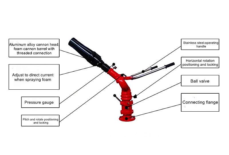 Der Schaumzylinder kann zur Verwendung als Feuerlöschmonitor abgenommen werden und bietet sowohl Impuls- als auch Gleichstromfunktionen. Schaumkanone PL24 für Feuerwehrfahrzeuge ist geeignet für Feuerwehrfahrzeuge und Anwendungen in der Erdöl-, Chemie- und Hafenindustrie.