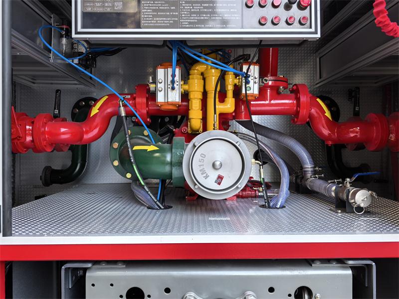 Der hintere Pumpenraum ist mit einer Feuerlöschpumpe CB10/60-RS und einem zugehörigen Bedienfeld ausgestattet. Auf dem Dach ist ein Feuerlöschmonitor PL8/48 montiert, der eine große Reichweite, einen breiten Abdeckungsbereich und einen verstellbaren Winkel bietet. Dieses Feuerwehrfahrzeug vereint Brandbekämpfungs- und Rettungsfunktionen und eignet sich besonders gut zur Bekämpfung von Bränden der Brandklasse B, wie beispielsweise Ölbränden. Damit ist es ein zentrales Ausrüstungsteil für die Gewährleistung der Sicherheit in städtischen und industriellen Gebieten.