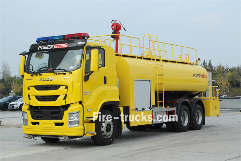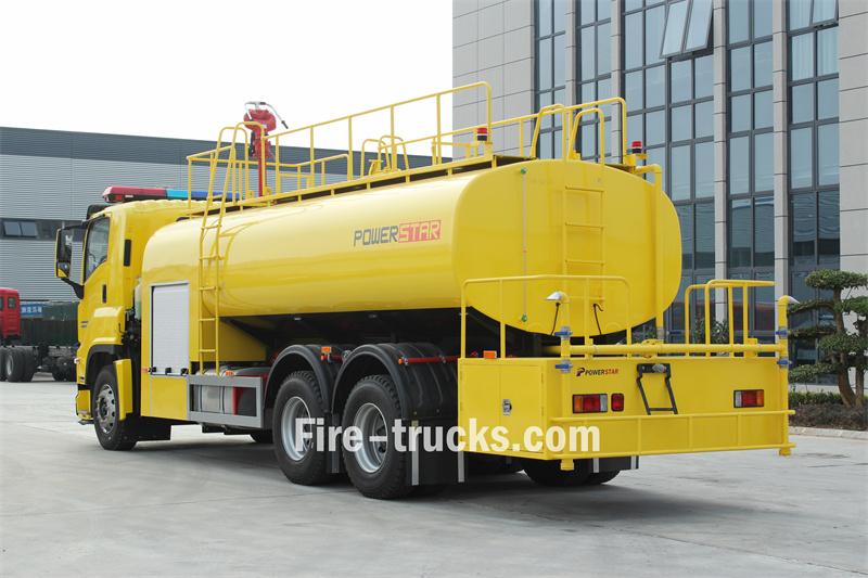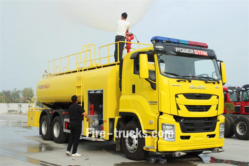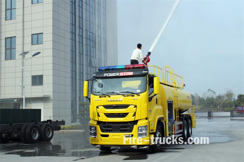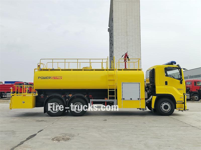 Das Isuzu 12000L Feuerlöschfahrzeug basiert auf einem Isuzu FVZ GIGA 6x4-Fahrgestell mit einem Radstand von 4650 + 1370 mm. Es ist mit einem Isuzu 6HK1-TCG60-Motor und einem FAST 9-Gang-Getriebe ausgestattet. Im vorderen Teil des Aufbaus befindet sich das Pumpenhaus mit einer CB10/60-RS-Feuerlöschpumpe und einem Bedienfeld. Dahinter ist ein 12 m³ fassender Wassertank aus Kohlenstoffstahl angebracht. Am Heck befinden sich eine Arbeitsplattform mit Werkzeugkasten, Seitensprinkler, eine Leiter am Tankheck, eine Füllstandsanzeige, Sprinklerköpfe auf der rechten Seite, ein abnehmbares oberes Schutzgeländer und ein PS8/50W-Feuerlöschmonitor.