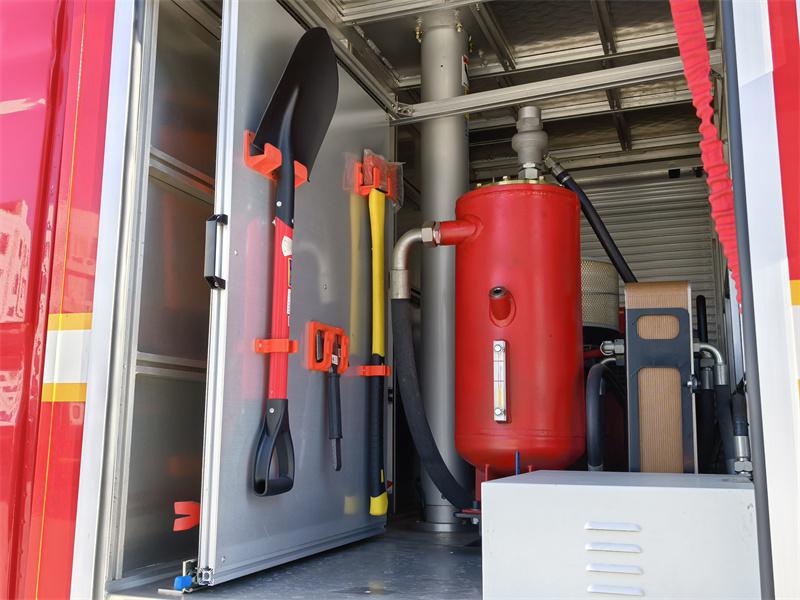 Das Druckluftschaumsystem verwendet das automatische Druckluftschaum-Feuerlöschsystem DC-CAFS60/45M Typ A, das in Verbindung mit einem Schaumdosiersystem, einer Feuerlöschpumpe CB10/80-XZ, einer Schaumpumpe B-FOAM-07, einem Feuerlöschmonitor PL8/64 und einem Hebebeleuchtungssystem eingesetzt wird.