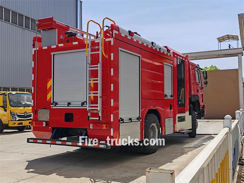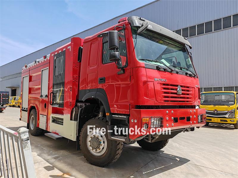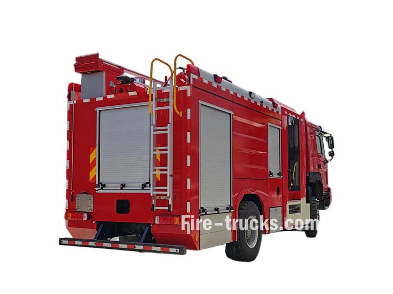 Der HOWO 4×4 Feuerlöschtankwagen ist ein geländegängiges Feuerwehrfahrzeug auf Basis eines SINOTRUK HOWO 4×4-Chassis. Er besteht aus mehreren Kernkomponenten: einem Hochleistungschassis, einer separaten Mannschaftskabine, einem 6 Kubikmeter großen Stahlwassertank, einem 2 Kubikmeter großen Edelstahlschaumtank, einer CB10/60 Feuerlöschpumpe, einem PL8/48 Feuerlöschmonitor und einem modularen Geräteraum. Er verfügt außerdem über einen integrierten Nebenabtrieb (PTO) und ein professionelles Rohrleitungssystem. Angetrieben von einem Weichai 380 PS-Motor und einem zuschaltbaren Allradantrieb, kombiniert mit professionellen Geländereifen, bietet das Fahrzeug starke Leistung und außergewöhnliche Geländegängigkeit sowie Anpassungsfähigkeit an komplexe Umgebungen.