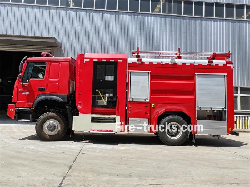 Das HOWO 4×4 Feuerwehrauto ist ein professionelles Feuerwehrfahrzeug auf Basis des SINOTRUK HOWO 4×4 Offroad-Chassis. Es ist mit einer hochwertigen Feuerlöschpumpe, einem 6-Kubikmeter-Wassertank und einem 2-Kubikmeter-Schaumtank ausgestattet. Darüber hinaus verfügt es über einen Löschmonitor mit einer Wasserstrahlweite von bis zu 70 Metern und einen modularen Geräteraum. Angetrieben von einem 380-PS-Motor, zuschaltbarem Allradantrieb und Offroad-Reifen überzeugt dieses Fahrzeug durch hervorragende Geländegängigkeit. Es wurde speziell für anspruchsvolle Einsatzszenarien wie Wälder, Erdölbrände, geologische Katastrophen und enge Stadtgebiete entwickelt und dient als mobiles Schnellfeuerlöschfahrzeug.